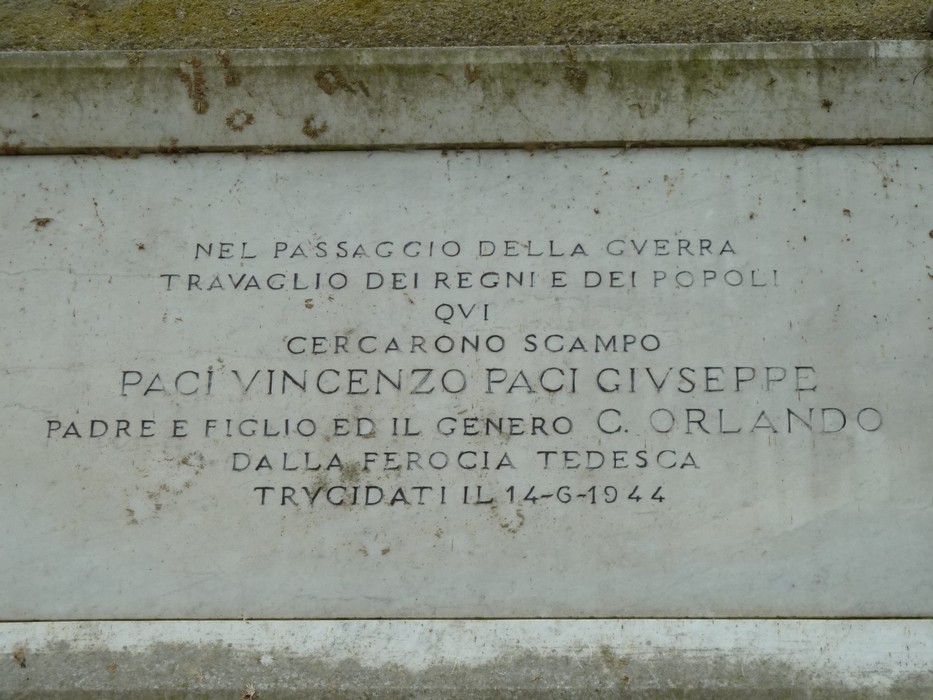 Sur l’Isola Maggiore, cette commémoration est l’occasion de se souvenir de trois membres d’une même famille de l’île, PACI Vincenzo (père), PACI Giuseppe (fils) et CHIAPPAFREDDO Orlando (gendre) assassinés le 14 juin 1944 par des soldats allemands.