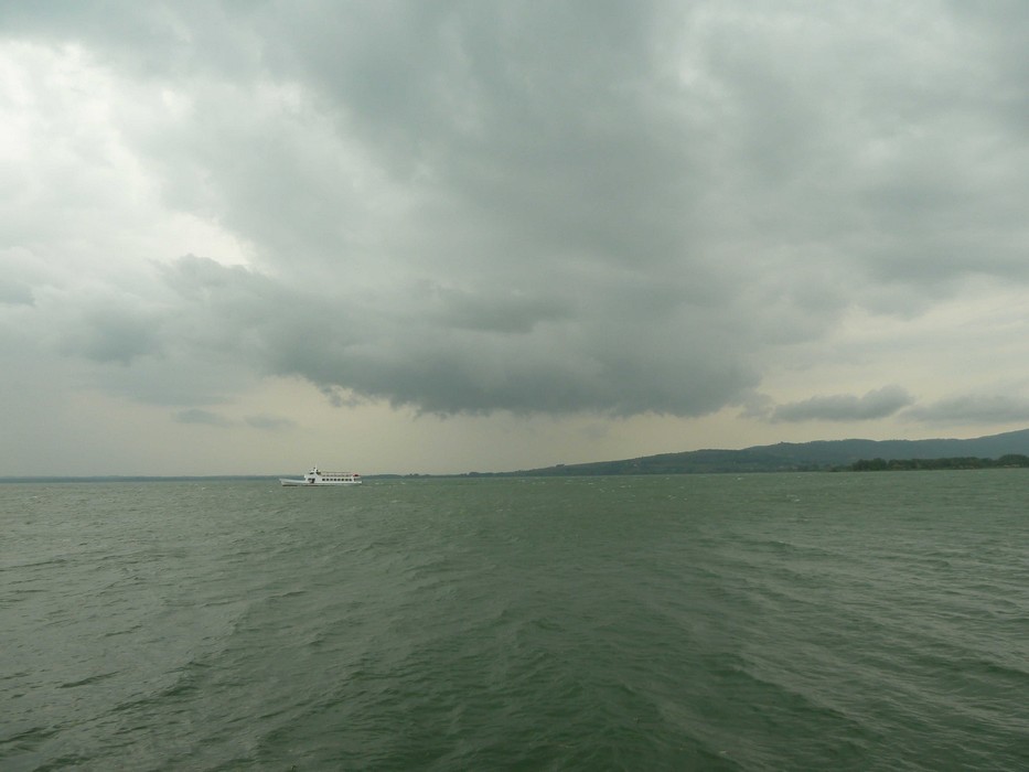 Ainsi, hier, samedi 4 juin 2011, on est passé, quasi sans transition, en un petit quart d’heure de temps, d’une journée souriante, ensoleillée et chaude (27°) à un orage sévère avec trombes d’eau, averses de grêle, sévères rafales de vent (entre 75 et 95 km/h) et diminution majeure de la visibilté sur le lac.