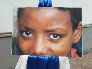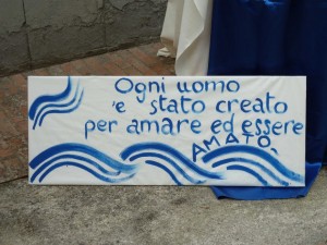 Fin dal mattino presto, gruppi di giovani hanno cominciato ad installare nella via Guglielmi numerosi pannelli e foto per illustrare la loro preoccupazione nei confronti degli ” altri “.