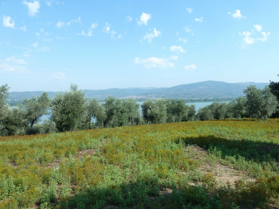 Sur sa droite, on peut observer quelques vues partielles sur l’Isola Minore et, dans le lointain, sur la rive est du Lac Trasimène.