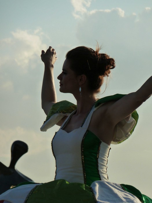 L’artiste introduisit sa prestation par ces mots : “Le coucher de soleil n’est pas un point d’arrivée, mais certainement un point de départ… celui qui nous entraîne vers la nuit“.