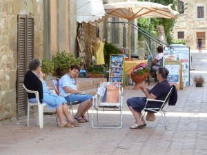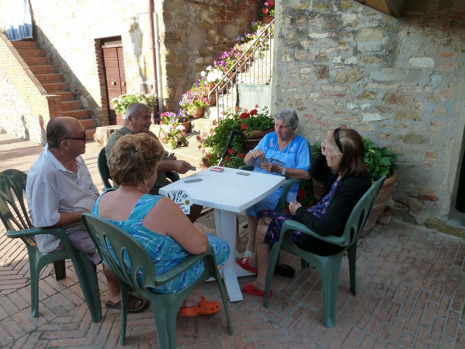 Les plus anciens profitent de la “piazza” pour jouer aux cartes ou pour se réunir autour d’une brodeuse de dentelle pour de longs bavardages.