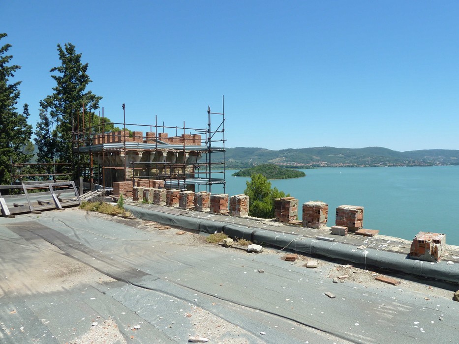 Actuellement, il est difficile de bien discerner les terrasses et leur mur d’enceinte, ainsi que la rampe qui descend doucement vers le rivage et qui devait, à l’époque, offrir une promenade des plus agréables avec une vue incomparable sur la moitié est du lac Trasimène et sur l’île Polvese.
