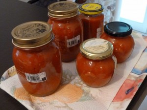 Ayant déjà inondé toute l’île avec ses beaux fruits rouges, Fabienne n’a plus eu comme ressource que la confection de réserves de sauce et coulis de tomates.