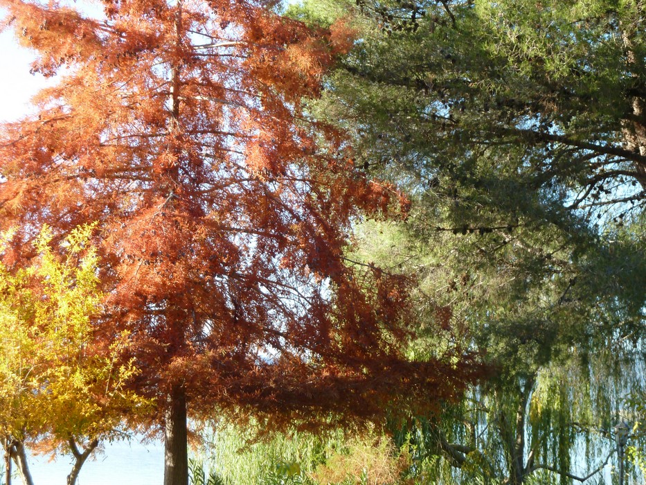 Près du lac, 2 grands arbres rouges, phares impavides…