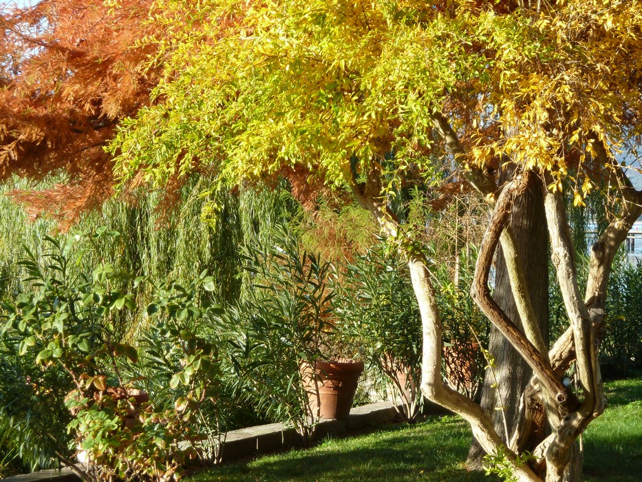Depuis la rive du lac, notre maison se distingue le mieux l’automne grâce à deux magnifiques arbres qui revêtent alors leur belle robe iincandescente…