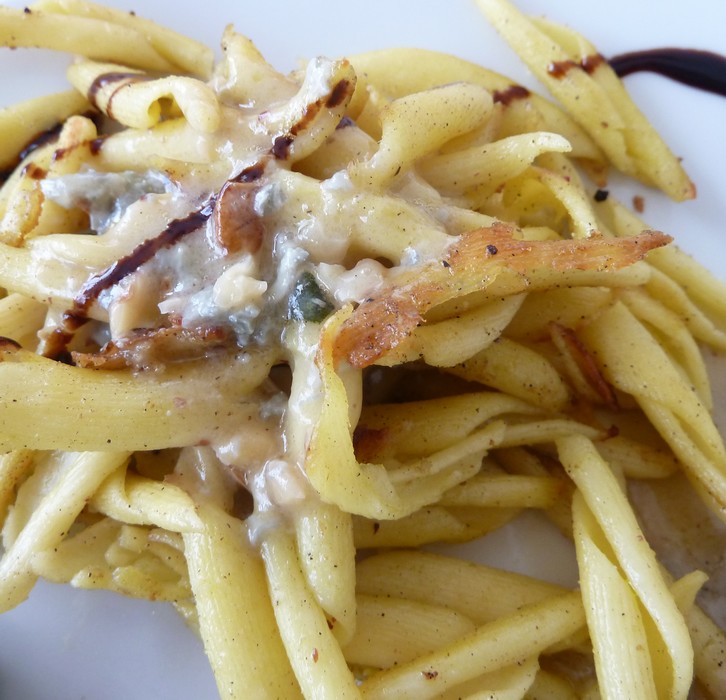 Elle peut également être servie avec des pâtes, il est utile dans ce cas de choisir des pâtes assez petites comme des raviolis (ricotta et épinards frais) trofie de Ligurie, des ciocchetti ou des pennettes.