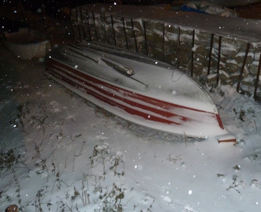 Les barques semblent un peu fantômatiques sous la neige et dans la pénombre…