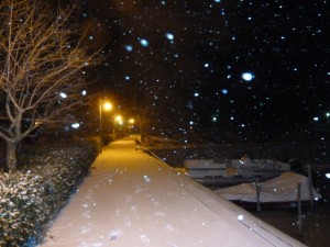 Après avoir décrit l’enneigement dans notre propriété, j’ai choisi cette fois de présenter quelques photos des chutes de neige dans la via Guglielmi et à la darsena de l’Isola au cours de la soirée du 10 février.