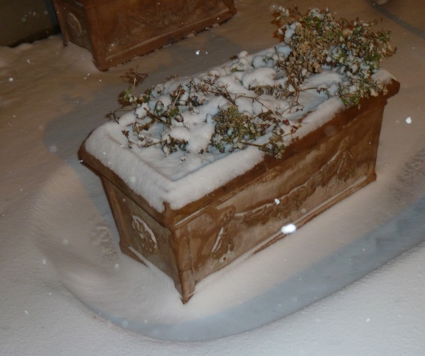 La neige amassée autour des bacs à fleurs du Centro Visite permet de réaliser l’épaisseur de la couche qui recouvre la via Guglielmi