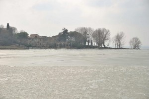 Il lago Trasimeno ghiacciato