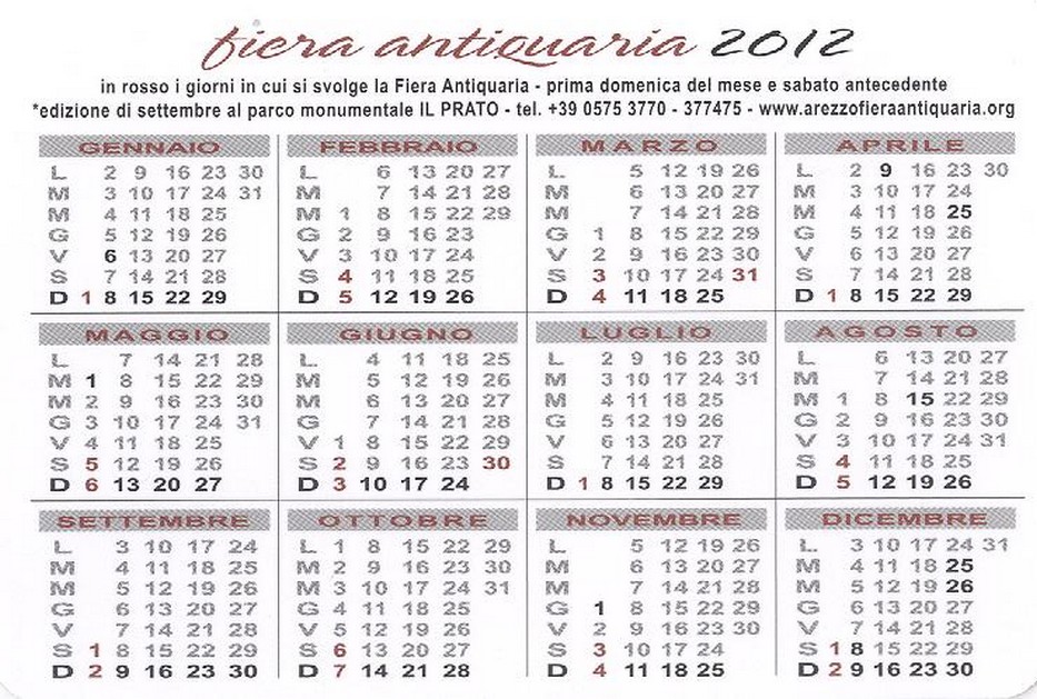 Abbiamo una altra notizia per chi si fosse perso questo evento: un’ altra Fiera Antiquaria si terrà ad Arezzo, il 25/04/2012!