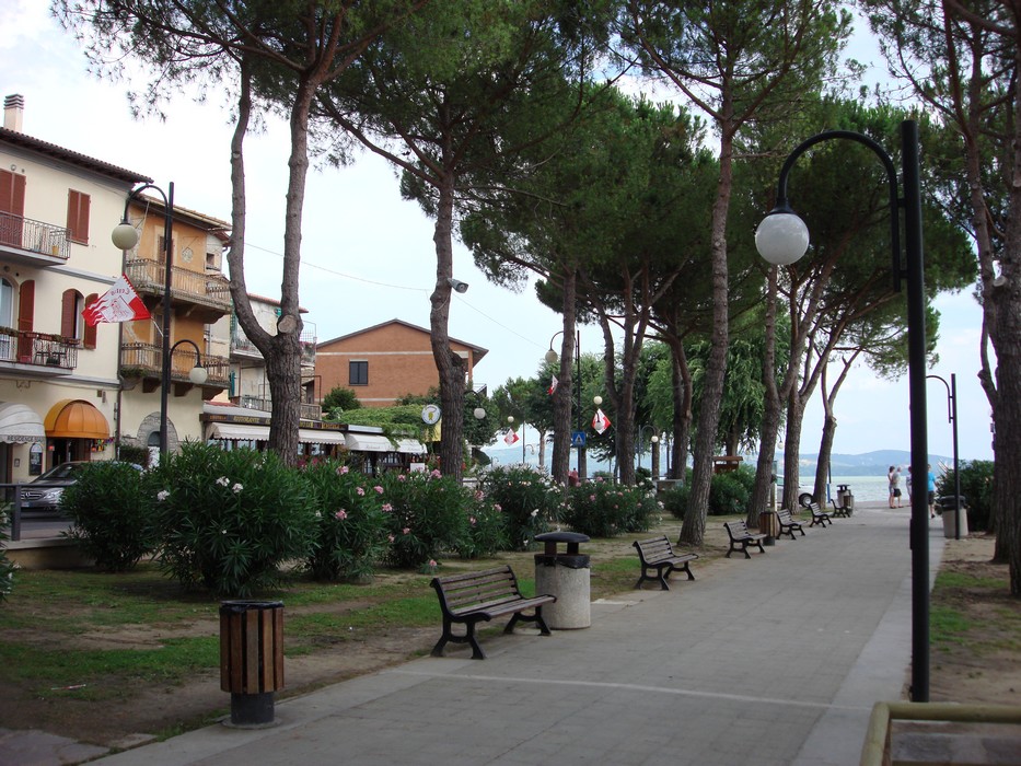 Quand on quitte le marché en prenant le long du lac en direction du centre de Passignano, on rencontre un large piétonnier, légèrement ombragé et doté de nombreux bancs.
