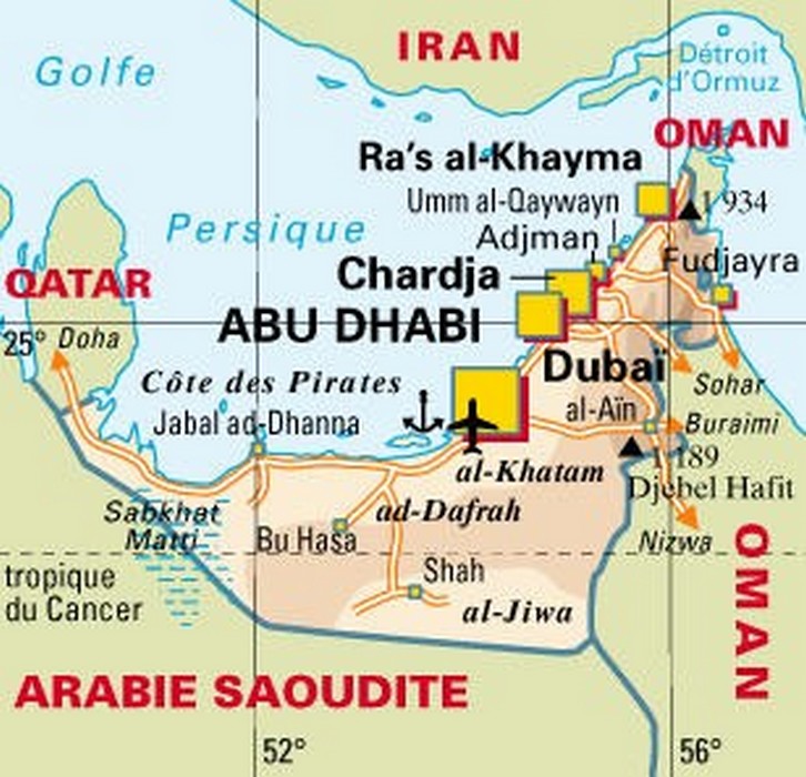 Carte des Emirats Arabes Unis