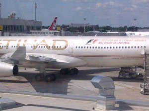 Il fut assez long car elle dut passer par Dusseldörf pour aller prendre un vol de la compagnie Air Berlin, mais en code partagé avec Ey Etihad Airways, compagnie basée à Abu Dhabi.