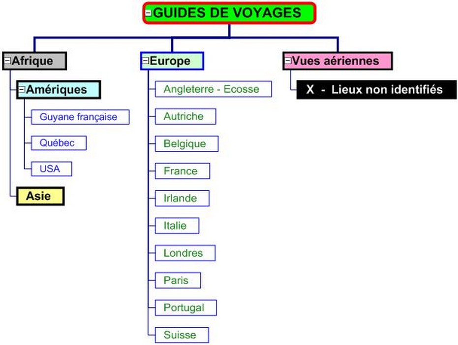 2. par régions et par pays comme s’il s’agissait d’extraits de guides de voyages.