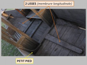 Le fond en mélèze, encore en excellente condition, est renforcé par trois entretoises (dragoni) et deux lisses (membrures longitudinales).