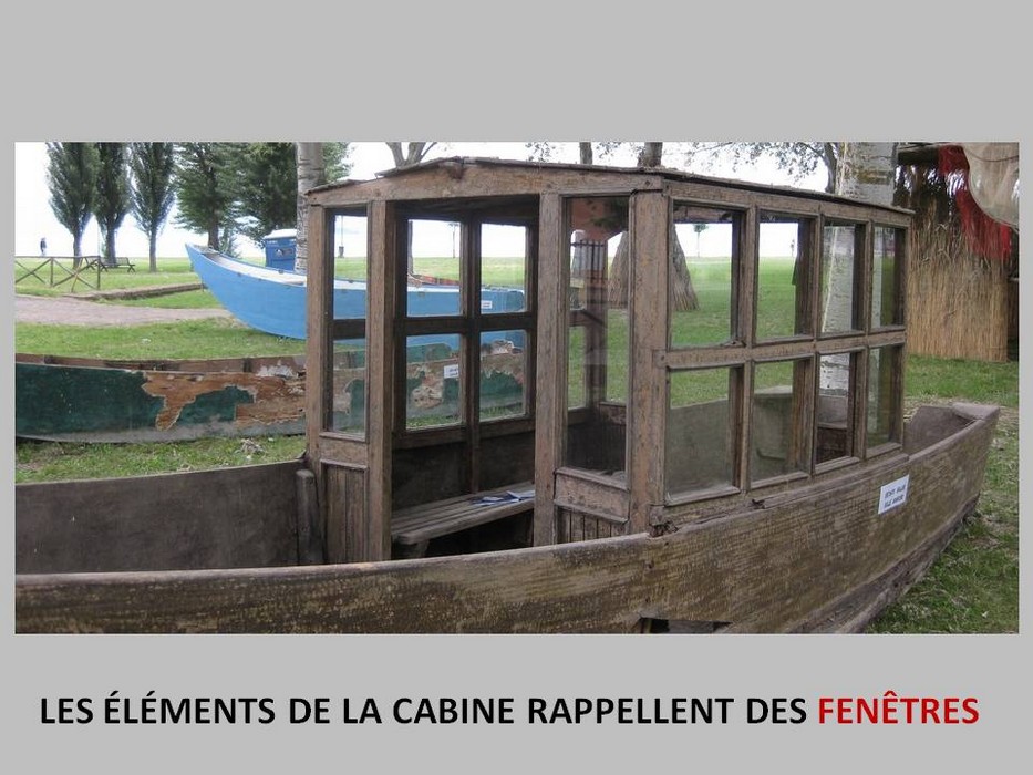 La cabine, elle, est construite selon la technique de la menuiserie des habitations et les éléments qui la constituent, rappellent en fait des fenêtres.