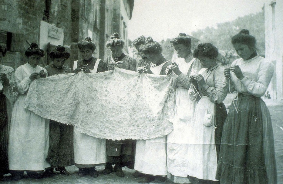 Sur l’Isola Maggiore, on fit alors appel à une enseignante de Turin, experte en « dentelle et point d’Irlande », une délicate dentelle réalisée avec un fil de coton presque impalpable et travaillé avec un crochet extrêmement fin.