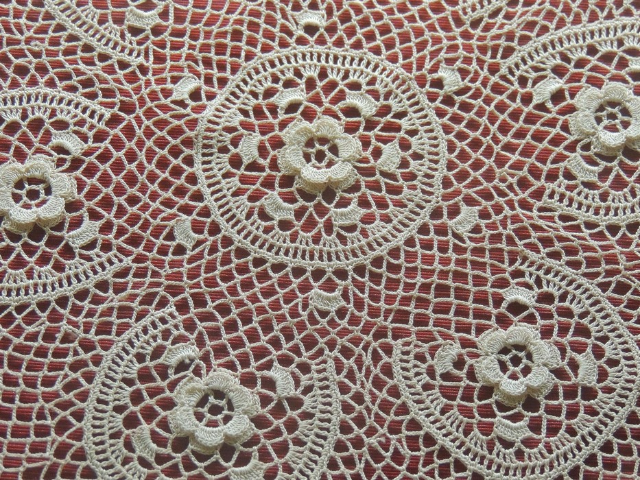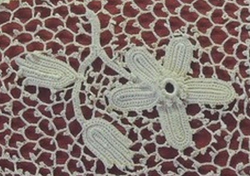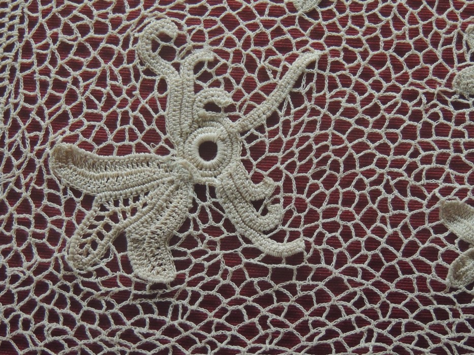 Centre de table, avec “filets” et “fleurs”, réalisé par la signora Anna De Santis.