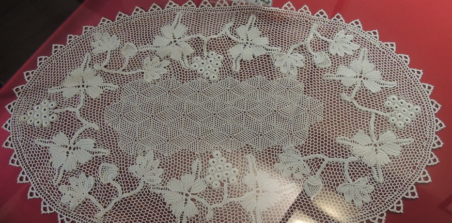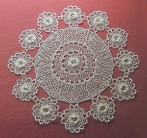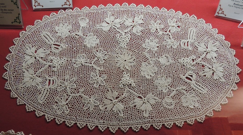 Centre de table en “point d’Irlande”, réalisé par la signora Virginia De Santis.