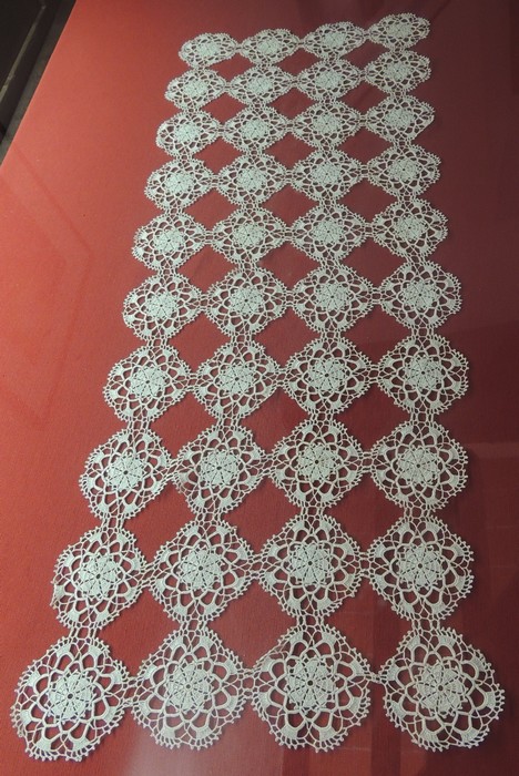 Centre de table sur le thème du “filet”. Collection de la signora Maria Vittoria Semolesti. Mis à disposition par sa propriétaire, la signora Silvia Silvi.