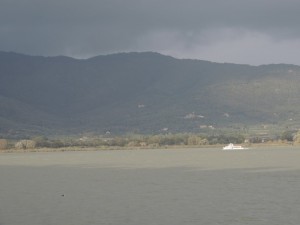 En deux trois jours, leur beau feuillage vert a commencé à se parsemer de traînées rousses (voir l’automne à l’Isola Maggiore).
