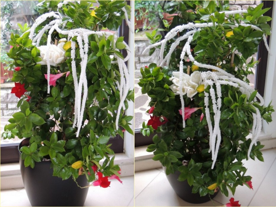 Notre décoration de Noël 2012 : Fabienne a choisi la dominante rouge et blanc.