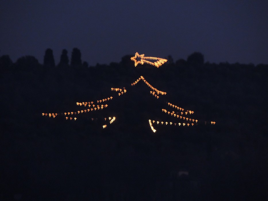 Sous cette étoile, un sapin lumineux décore le versant ouest de l’île.