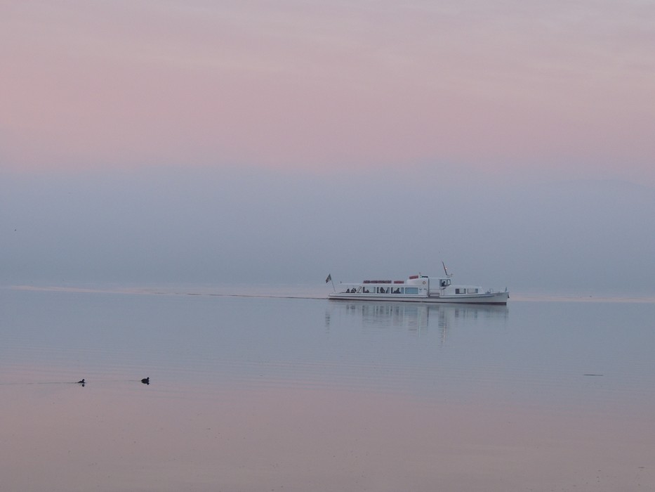 Mais le vendredi 4 janvier 2013, nous avons eu droit à un brouillard particulièrement épais sur le lac Trasimène qui a persisté pratiquement toute la journée.