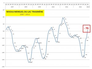 Le niveau du lac Trasimène semble devoir être plus satisfaisant en 2013 qu’en 2012.