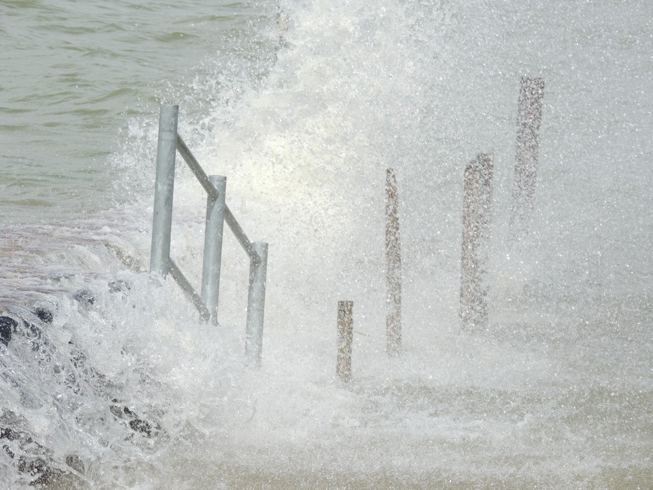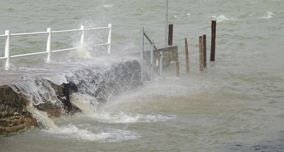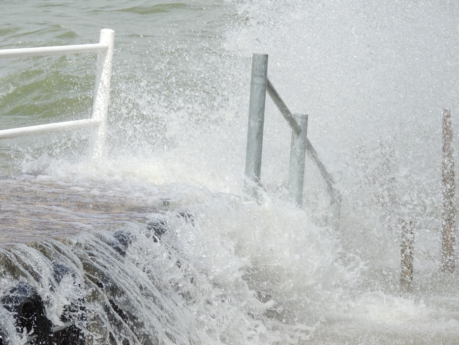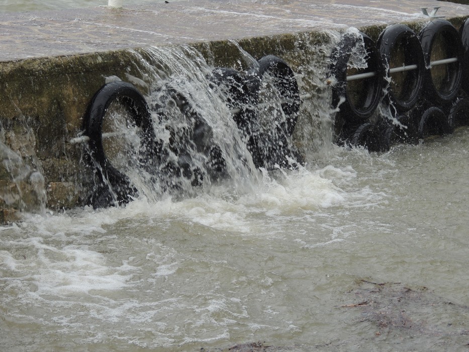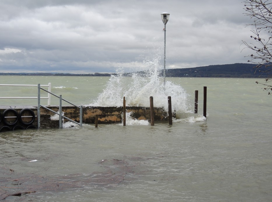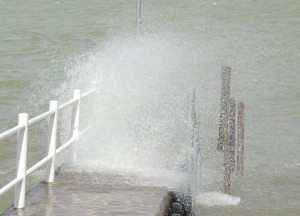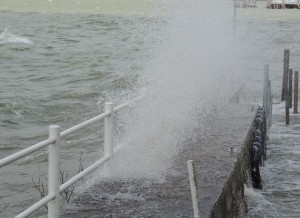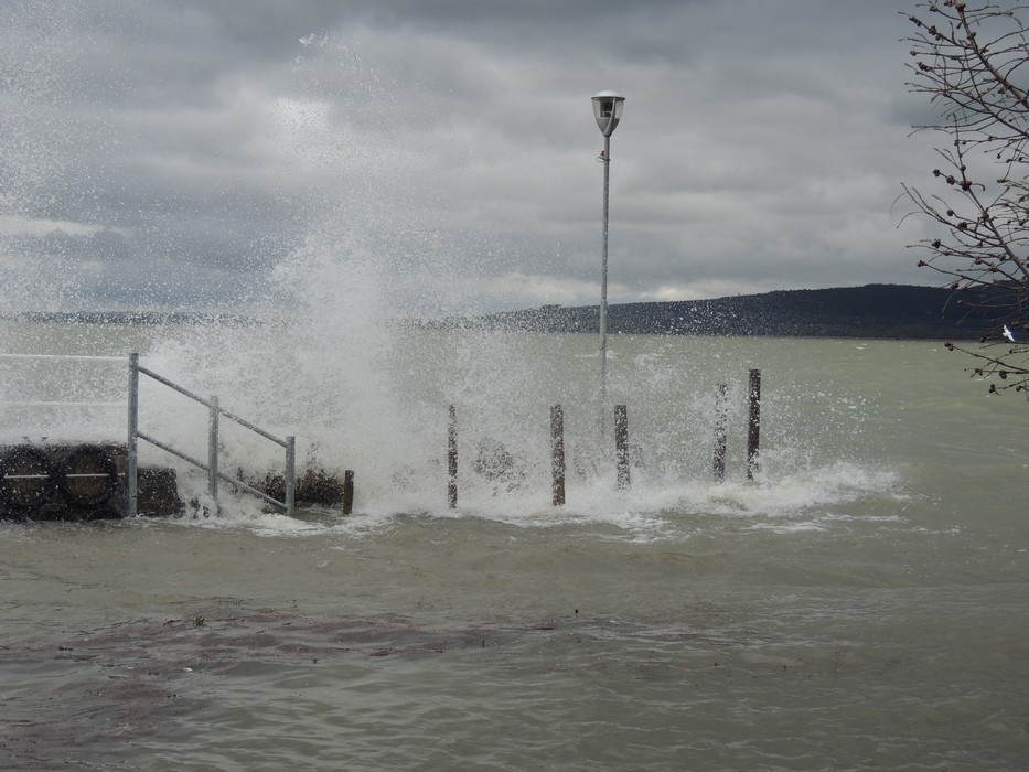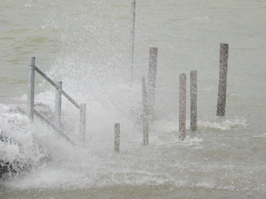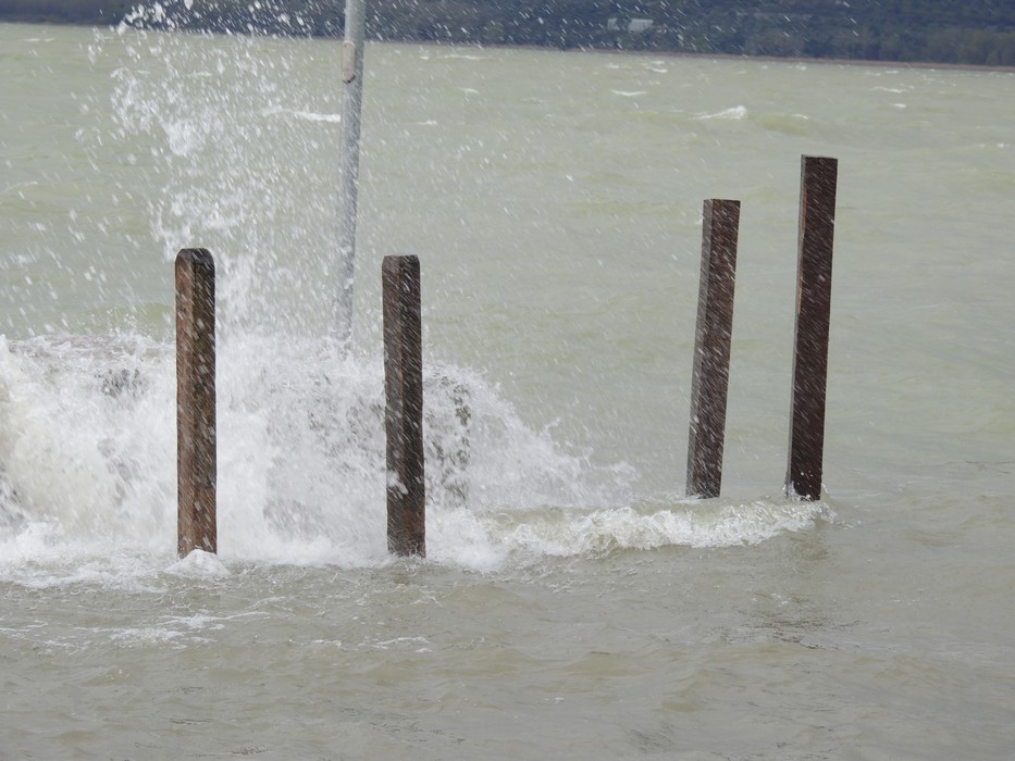 Oggi, questo alto livello e un forte vento da sud-ovest ci ha portato un grande spettacolo di fontane presso la nostra darsena.