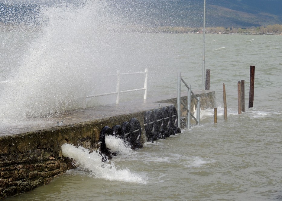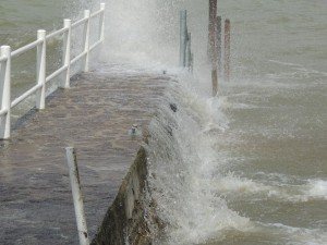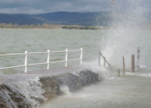 En cas de grand vent, les vagues sont bien entendu plus imposantes quand le niveau du Trasimène est aussi élevé.