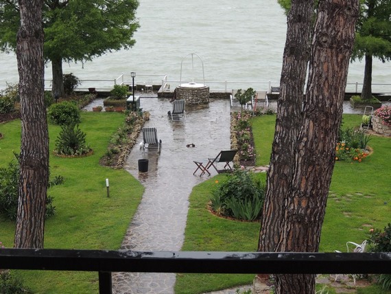 Le niveau du lac Trasimène est impressionnant et, en cas de bourrasques, les vagues n’hésitent plus à sauter hardiment par-dessus nos deux digues, jardin et petit port ptivé.