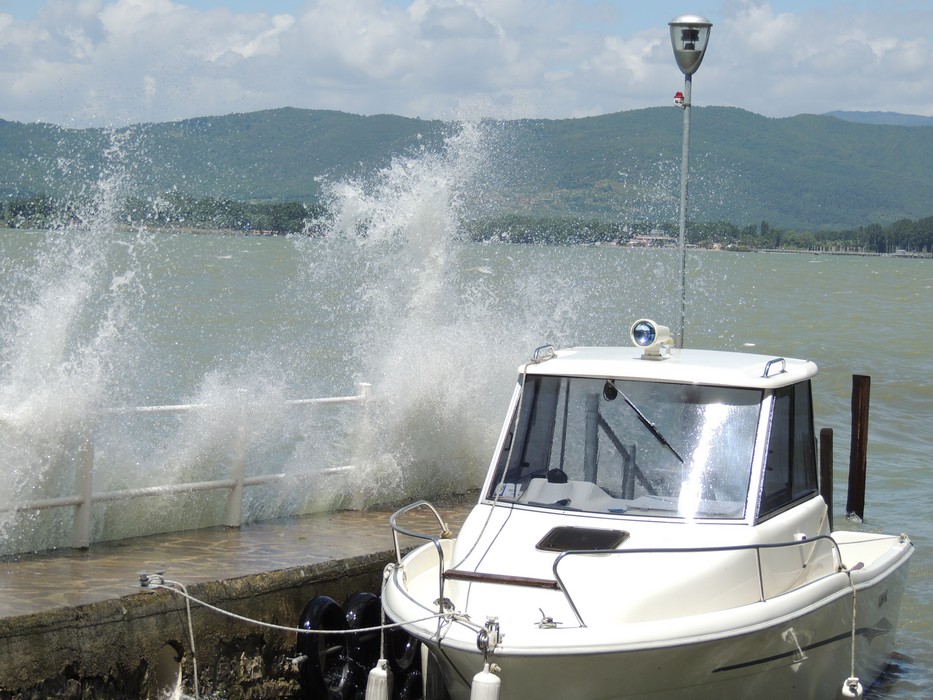 Nous avons déjà publié plusieurs articles sur la hauteur et la violence des vagues qui viennent parfois attaquer nos deux digues (maison et petit port privé) depuis qu’au premier trimestre 2013 le lac Trasimène a atteint son plus haut niveau depuis 1995.