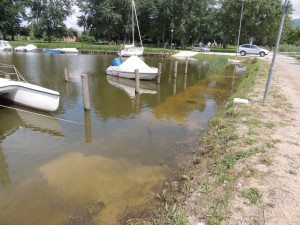 Et l’eau affleure le chemin carossable qui mène au pont flottant où sont accostés la plupart des voiliers.