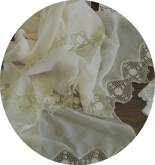 Voyons maintenant quelques ouvrages pour le jour du mariage, réalisés par des habitantes de l’Isola Maggiore.