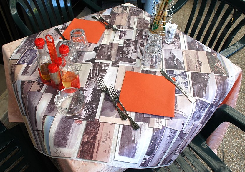Après avoir réussi à acheter une collection d’anciennes cartes postales de Magione et des environs du lac Trasimène, il s’en est servi pour créer un jeu de nappes qui constituent une véritable plongée dans la vie passée de cette région.