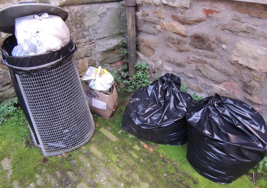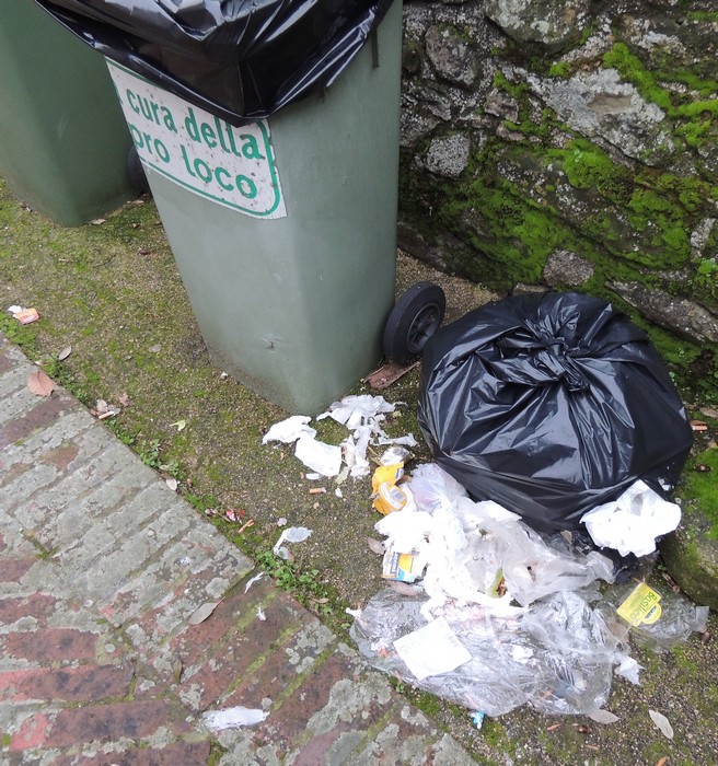 I gatti cominciano a strappare alcuni sacchetti che non è più possibile di mettere al riparo nelle pattumiere già piene.
