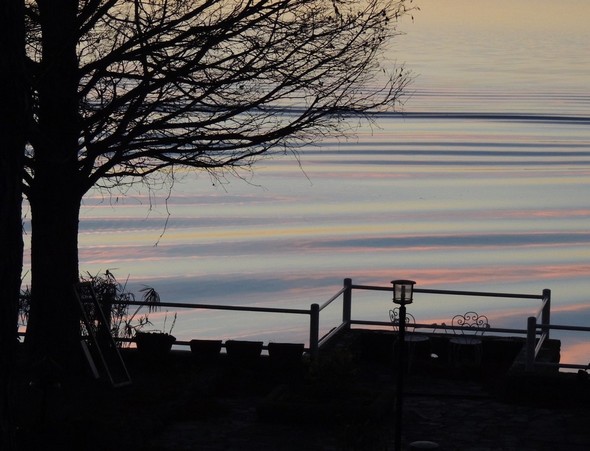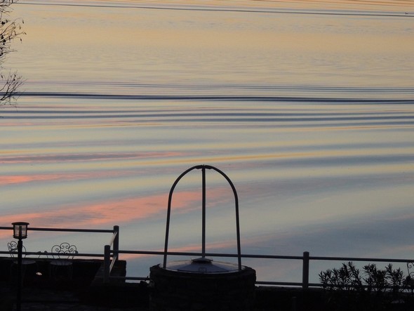 Questa volta sono stato in grado di fotografare la diffusione del crepuscolo sulla scia del traghetto vespertino alla fine del nostro giardino.