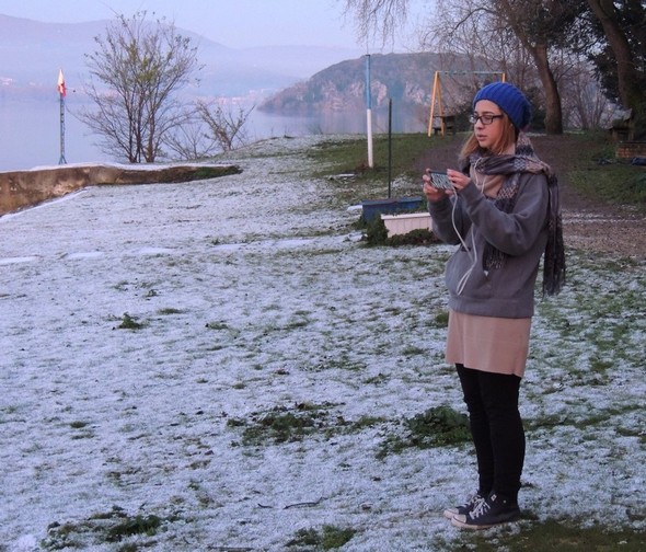 siamo stati sorpresi di scoprire la piccola spiaggia dell’isola completamente ricoperta da un leggero tappeto bianco.