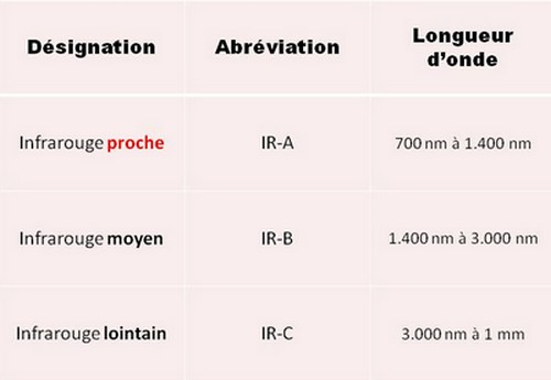 Le domaine de l’infrarouge est découpé en trois zones :