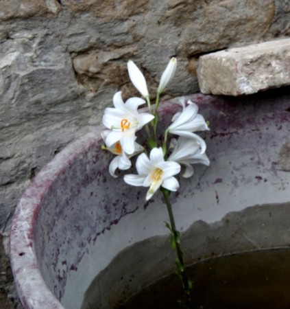 Ici,en Italie, les coquelicots restent très présents et n”hésitent pas à coloniser le sommet d’un muret…