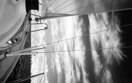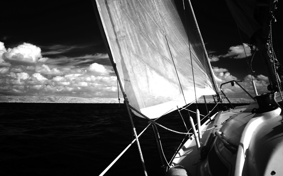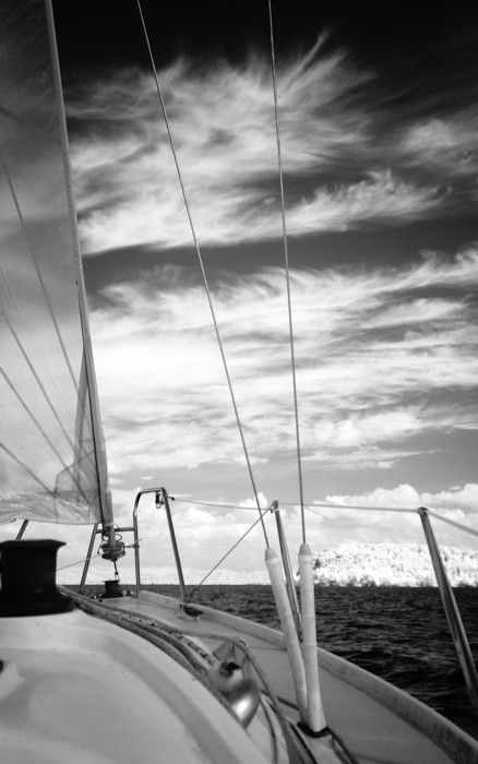 Reportage di una navigazione sul lago Trasimeno, con immagini in bianco e nero, attraverso la tecnica del infrarosso.