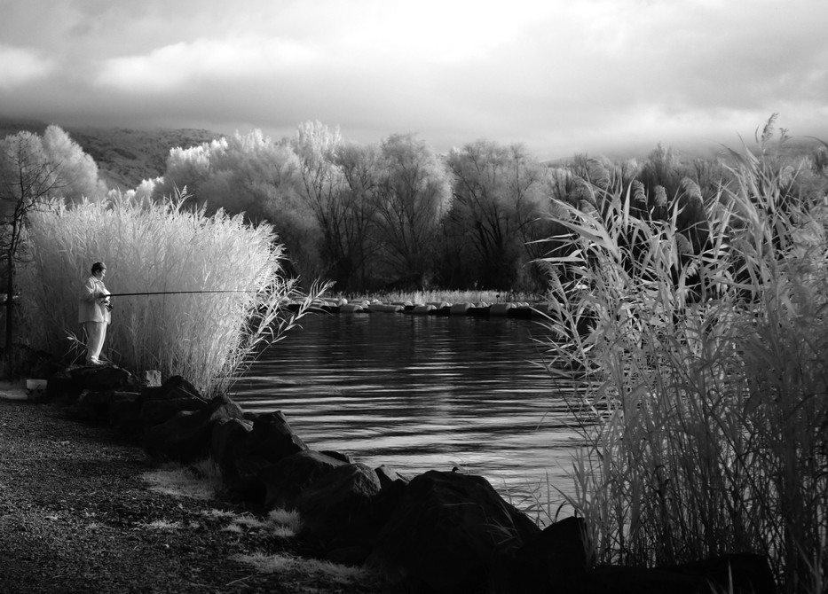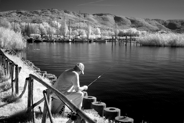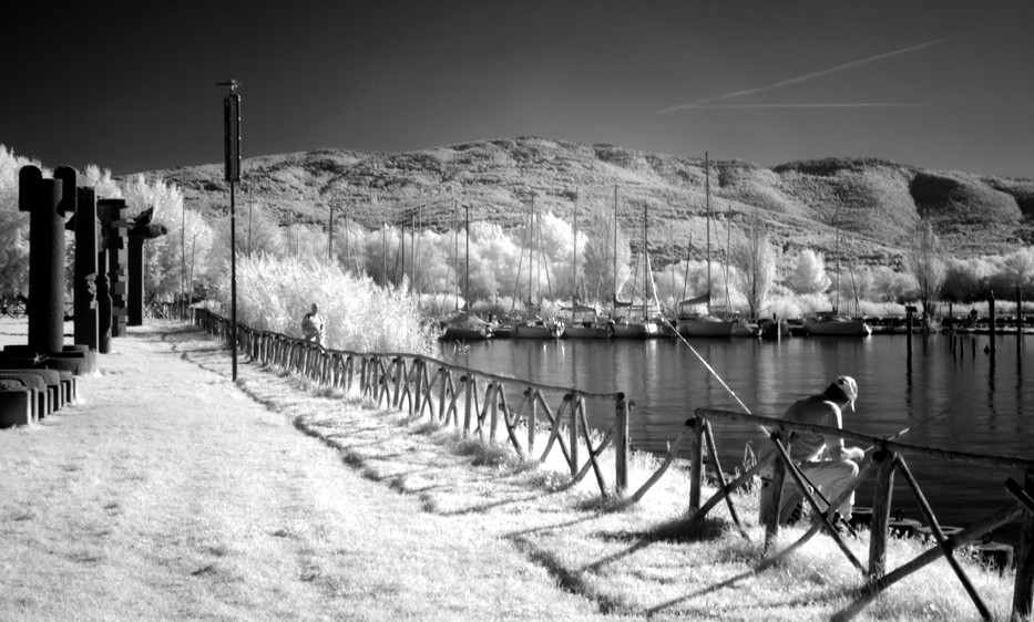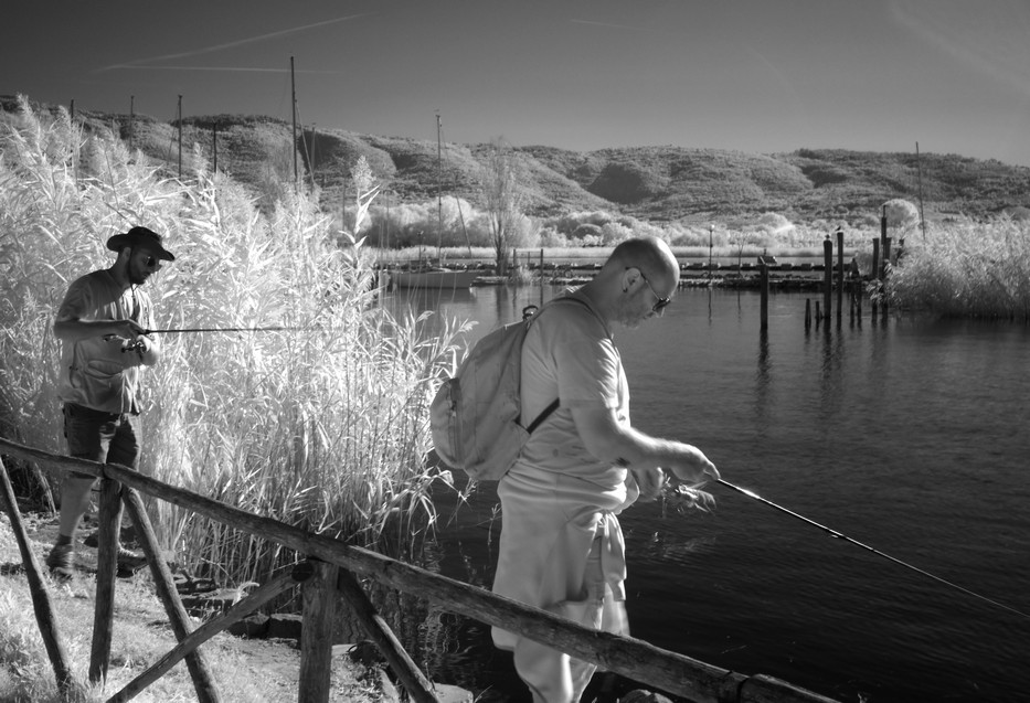 Messa in evidenza fotografica della pesca sportiva onnipresente sulle le rive del lago Trasimeno e di tutta la bellezza di queste rive.