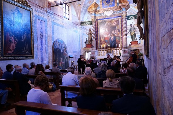 Ainsi, dans le cadre de l’événement annuel “Isola Maggiore, Isola del Libro“, Italo Marri a invité un groupe prestigieux, l’Ensemble d’Ombrie à venir exécuter dans l’église du Bon Gesù plusieurs oeuvres de musique classique dont « Ashram » le tout nouvel opus du compositeur et chef d’orchestre italien Giuseppe Vessicchio.