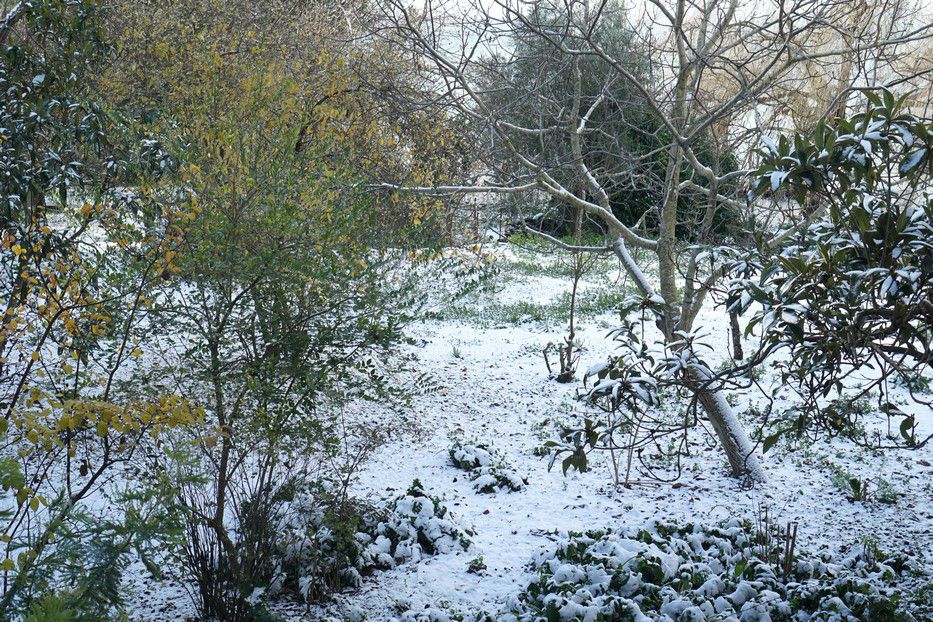 La nuit suivante, le ciel d’hiver fut un peu plus généreux et, au réveil, notre jardin affichait une belle blancheur, tombant à point une journée de Réveillon.