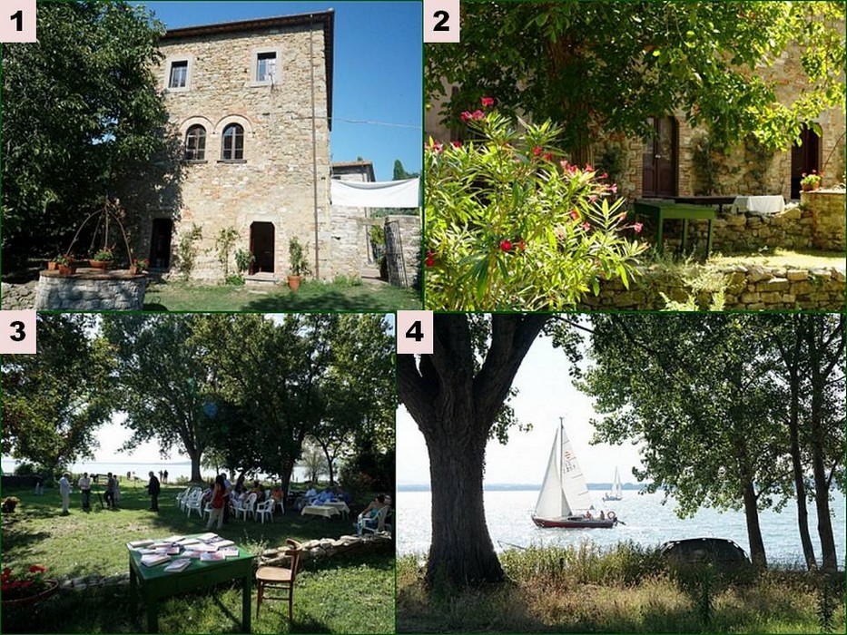 1 - One home of the Bishopric at the disposal of the organiser of "Isola Maggiore, Isola del Libro".   2 - Entry of the garden of this house.   3 - The space used for the presentation of books and which will be made available to the Writing Workshop.   4 - At the bottom of this space, view on the Trasimeno.