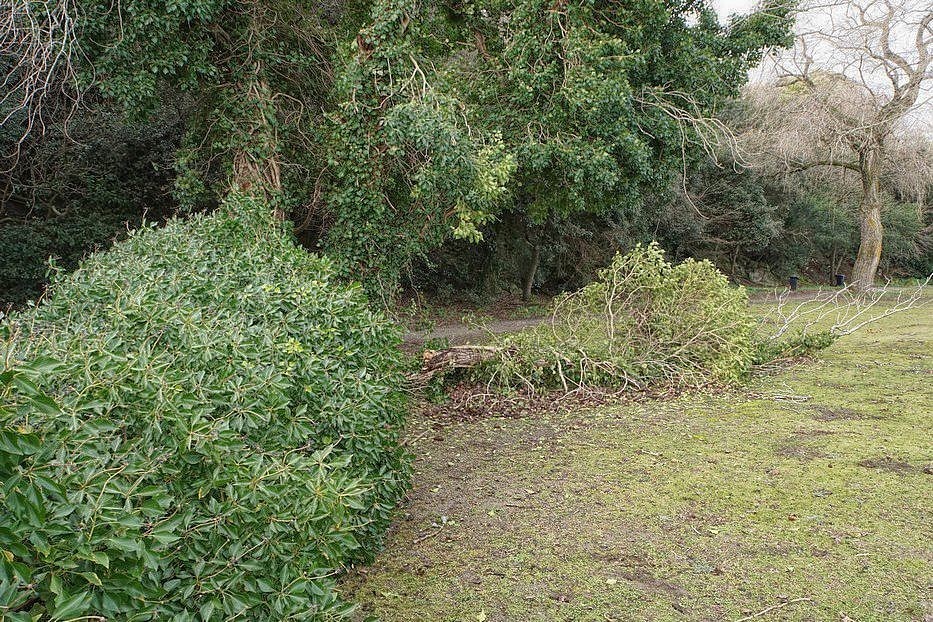A l’avant-plan, sur le côté droit de la photo, une branche rompue lors d’une précédente “tempête “.
