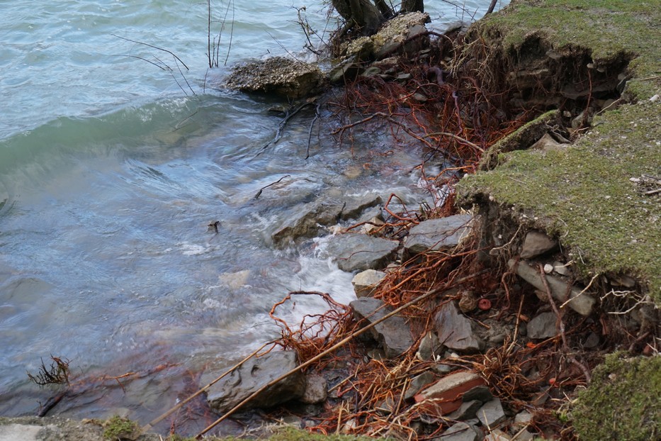 Aujourd’hui, je vous propose les dommages encourus par la petite plage située à la rive nord de l’ Isola Maggiore.
